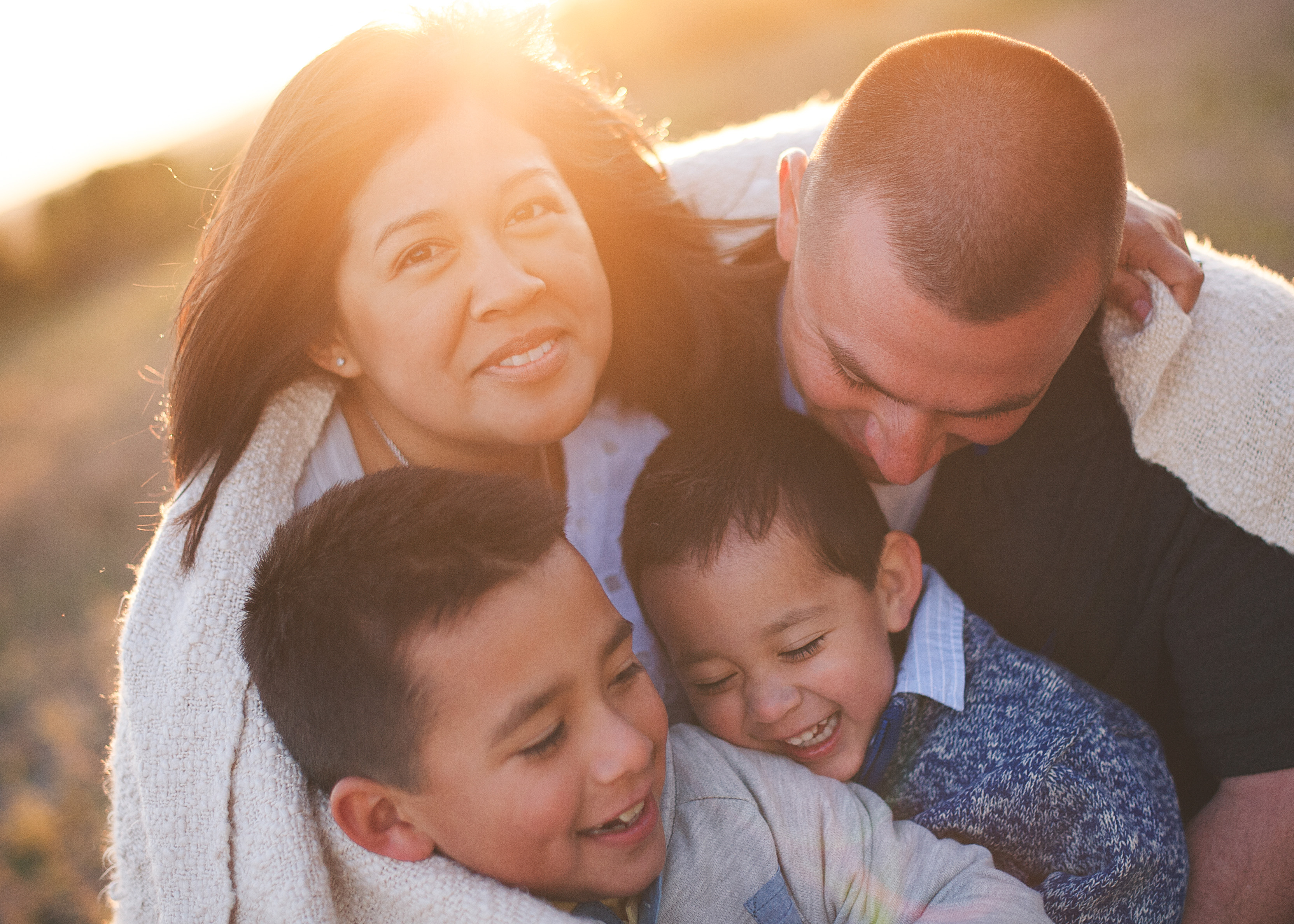 Awesome family in gorgeous outfits with good spirits for their gorgeous sunset family session= an evening well spent. Their smiles are contagious!